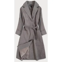 Hnědý károvaný dámský kabát se 3/4 rukávy (2718)