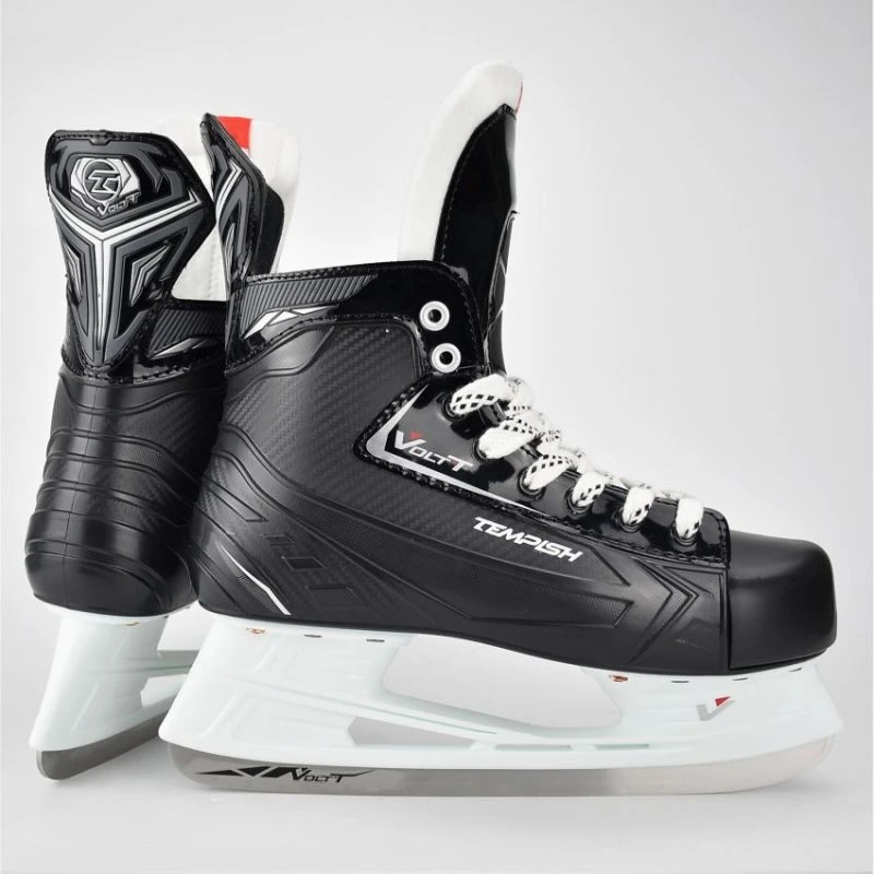 Łyżwy hokejowe TEMPISH Volt-T Max Niezawodność, komfort i trwałość dla amatorów hokeja Łyżwy hokejowe TEMPISH Volt-T Max zostały stworzone z myślą o amatorach, którzy poszukują wygodnych i solidnych łyżew do regularnej gry i treningów. Dzięki wytrzymałym materiałom i anatomicznemu dopasowaniu zapewniają stabilność, ochronę oraz komfort nawet podczas długiego użytkowania. Głowne cechy: Wytrzymała konstrukcja: Cholewka wykonana z kompozytu termoplastycznego zapewnia długą żywotność i odporność na intensywne użytkowanie. Komfort i dopasowanie: Podszewka z nylonu CAMBRA oraz anatomicznie profilowana wkładka i wyściółka z pianki w okolicy kostki gwarantują wygodę i wsparcie. Ochrona i stabilność: Język z PVC i 9 mm filcu chroni przed uciskiem i otarciami, a anatomiczna skorupa wspiera kostkę i ścięgno Achillesa. Wysoka jakość jazdy: Ostrze TEMPISH 7000 ze stali powlekanejj zapewnia trwałość, płynny ślizg i doskonałą kontrolę. Łyżwy hokejowe TEMPI