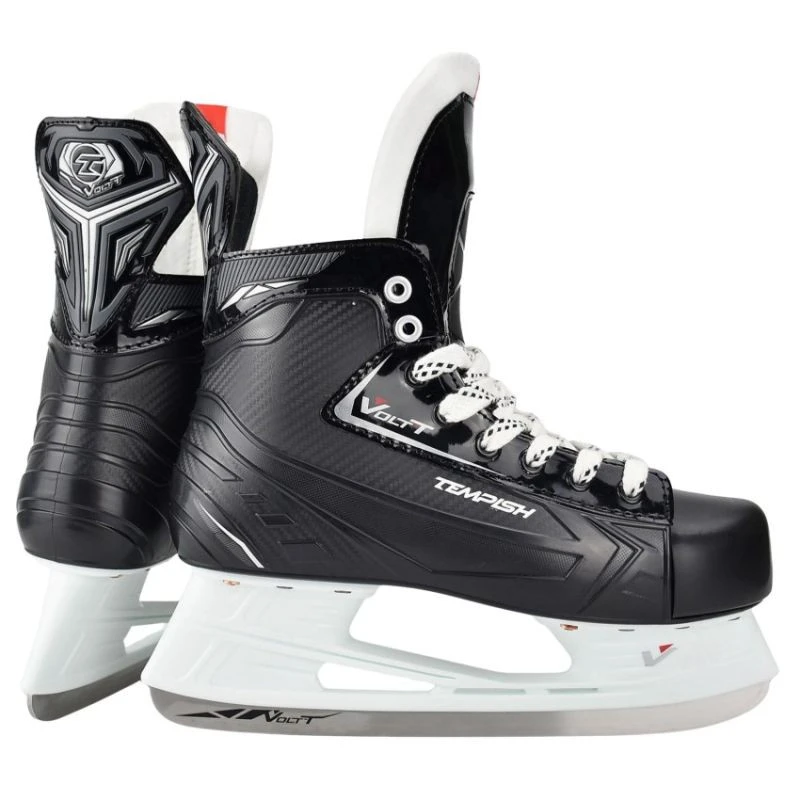Łyżwy hokejowe TEMPISH VOLT-T PRO Wytrzymałość, precyzja i komfort dla wymagających graczy Łyżwy TEMPISH VOLT-T PRO zostały stworzone z myślą o zaawansowanych hokeistach w sporcie amatorskim, którzy regularnie trenują i biorą udział w rozgrywkach. Dzięki solidnej konstrukcji, anatomicznemu dopasowaniu i zastosowaniu materiałów najwyższej jakości, model ten oferuje niezawodność i wydajność niezbędną podczas intensywnej gry. Główne cechy Wytrzymała konstrukcja kompozytowa: Zewnętrzna skorupa buta wykonana z termoplastycznego kompozytu zapewnia doskonałą stabilność i odporność na uszkodzenia – nawet przy częstym użytkowaniu. Anatomiczne dopasowanie i ochrona: Wnętrze wyłożone szczotkowanym nylonem CAMBRA z anatomiczną wkładką oraz piankowymi panelami wokół kostki gwarantuje komfort, wsparcie i skuteczną amortyzację wstrząsów. Wzmocniony, dwuczęściowy język: Z wbudowanymi wkładkami ochronnymi z tworzywa – chroni stopę przed uderzeniami kijem czy k