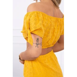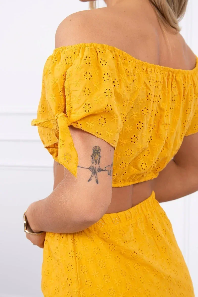 Představujeme vám sadu halenky a sukně. Halenka a sukně wze vzdušné, příjemné tkaniny. Nepostradatelné pro horké dny. Halenka s vázáním na rukávech. Sada je vyrobena z vysoce kvalitního materiálu. Velikost je univerzální a vyhovuje dámám, které nosí velikost S, M nebo L.