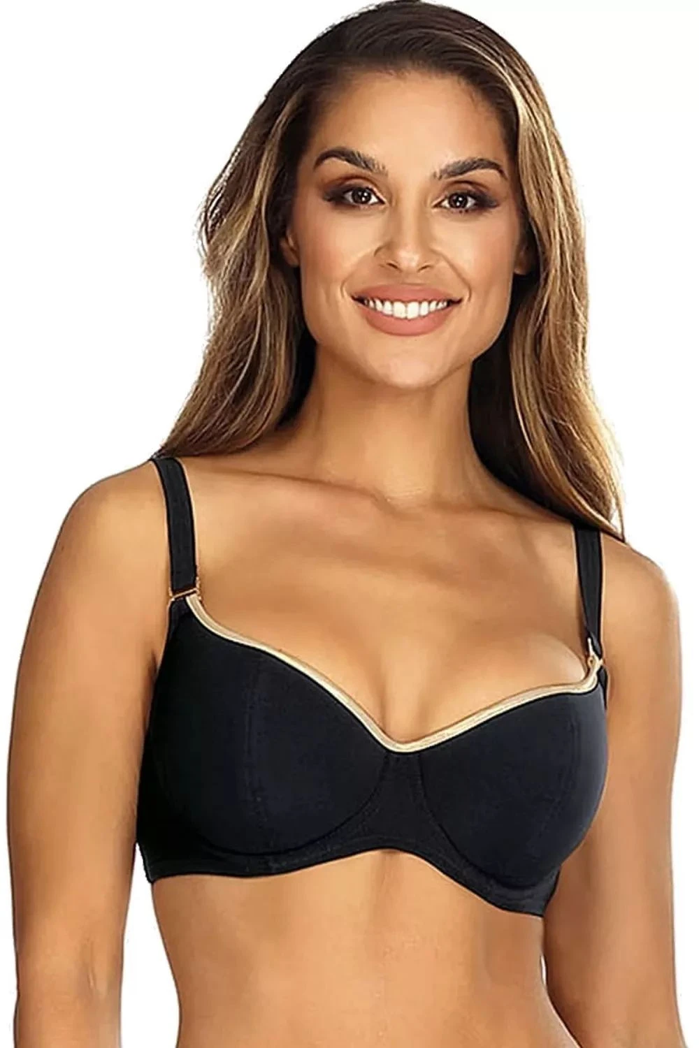 Horní díl plavek 105/509 FEBA - černá barva - pěnové košíčky - zdobené zlatým lemováním - s kosticemi - nastavitelná ramínka - kovové prvky zlaté barvy