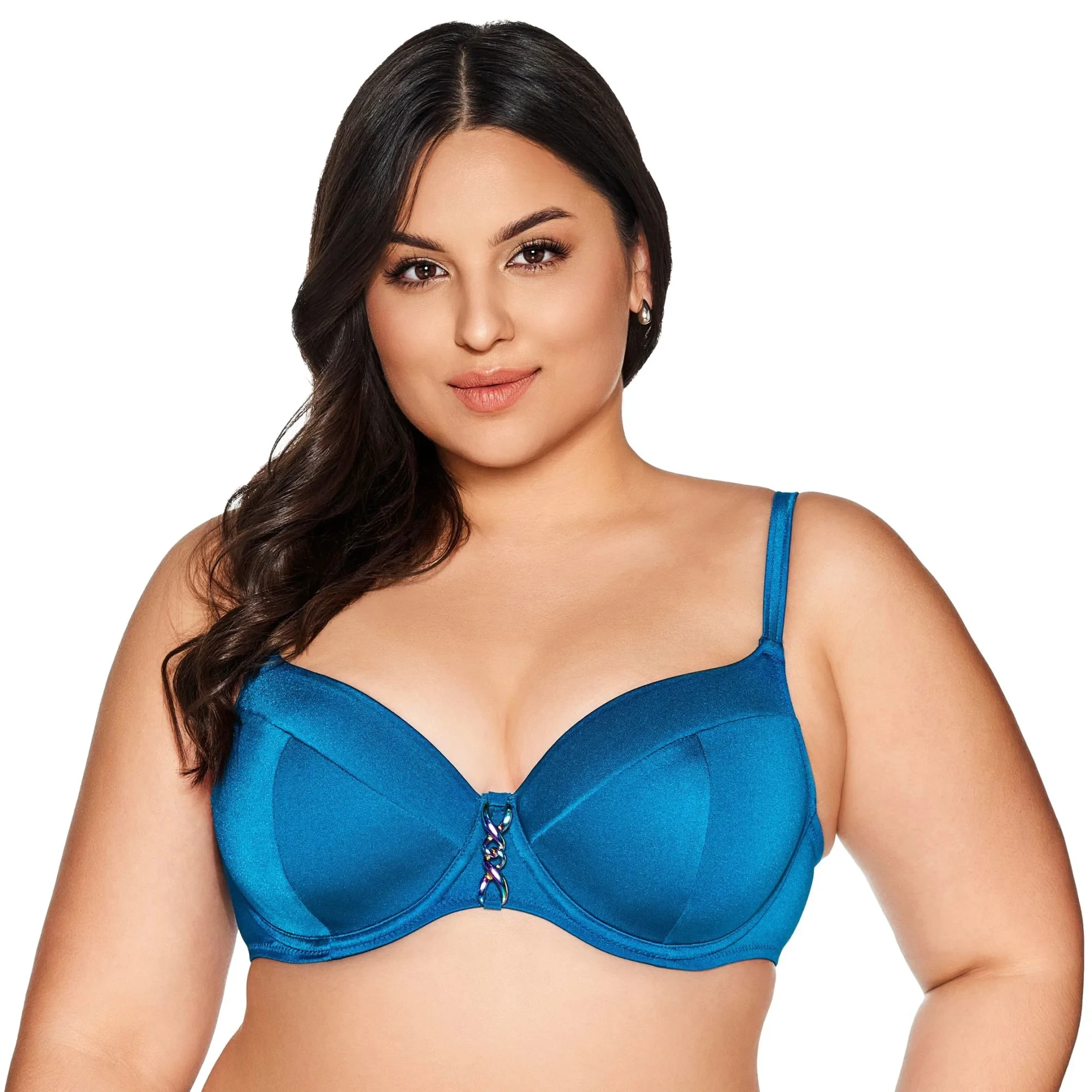 Horní díl plavek 13 azure AVA - azurová barva - nastavitelná ramínka - zapínání vzadu - lehce polstrované košíčky - intenzivní barva