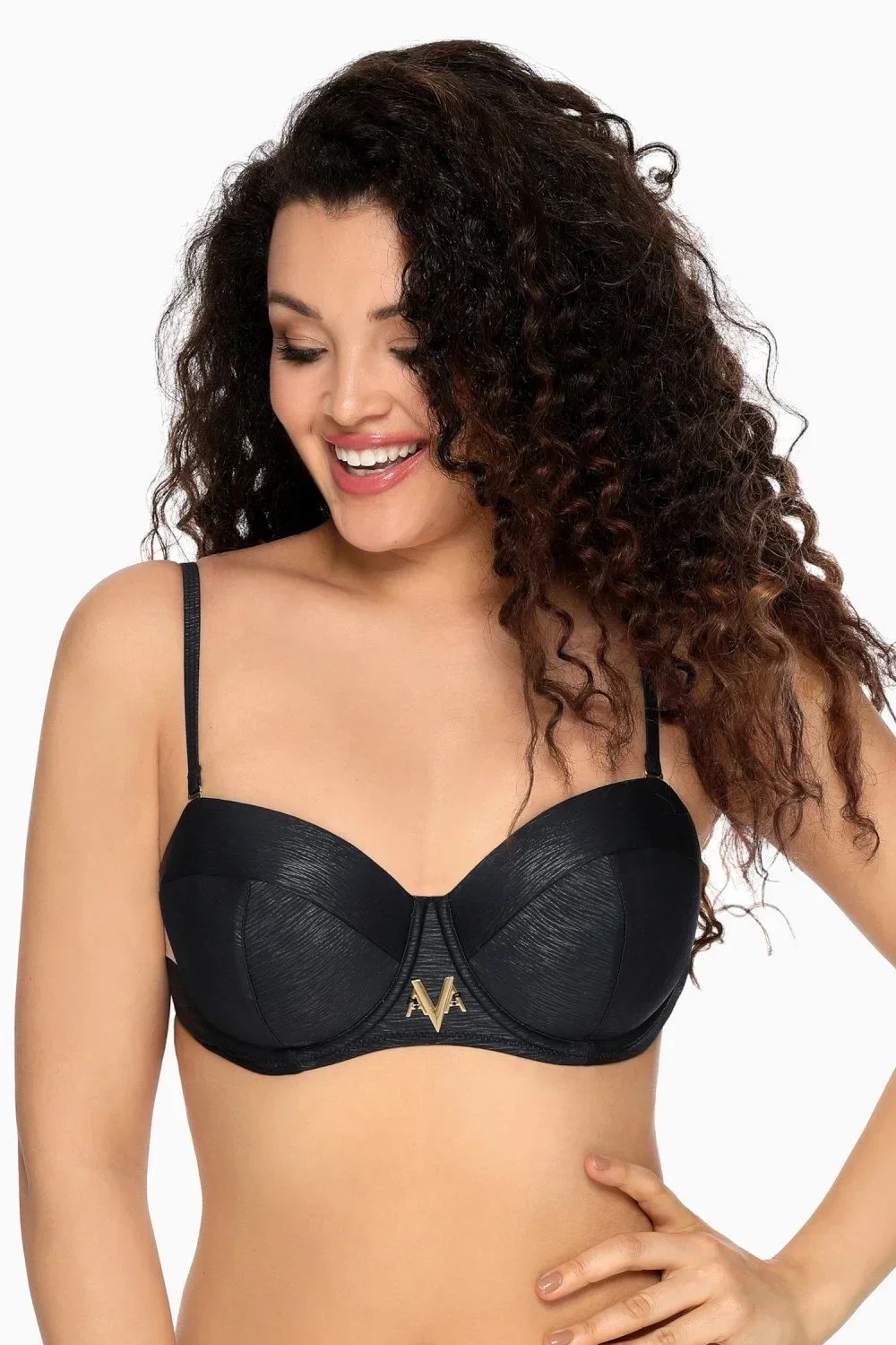 Horní díl plavek 148 AVA - černá barva - z kvalitního mikrovlákna - mírně vyztužené košíčky s kosticem - regulovatelná ramínka s mašlí k uvázání - bezniklové zapínání