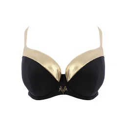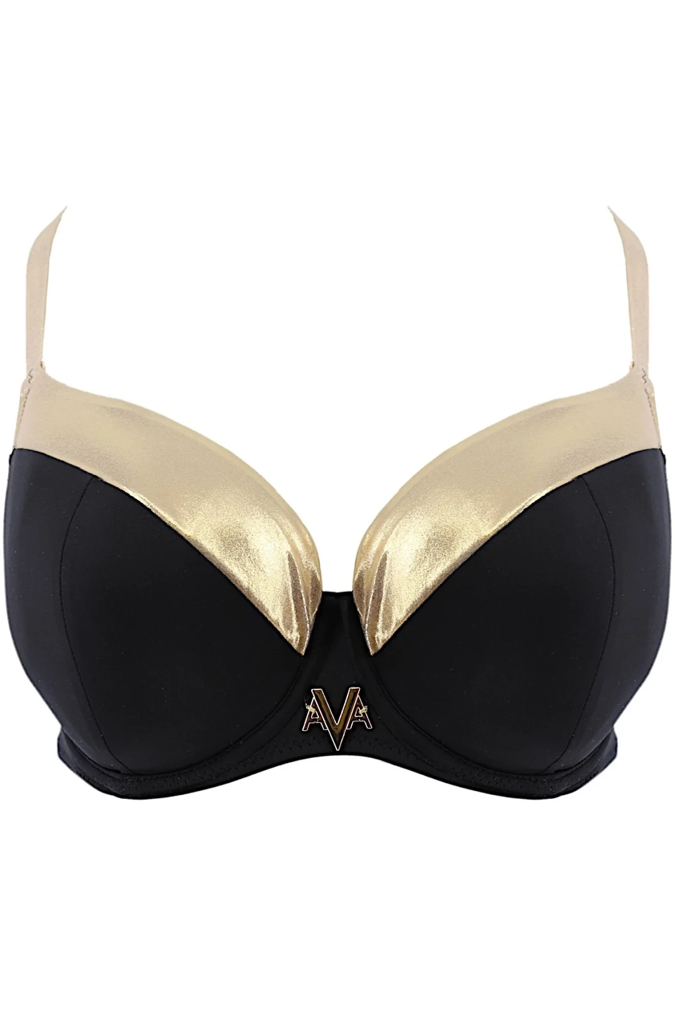 Horní díl plavek 178 black AVA - černá barva - vyztužené košíčky - nastavitelná ramínka neodnímatelná - elegantní zlatý pruh