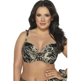 Horní díl plavek 184 Mocca AVA - z hladkého mikrovlákna - se vzorem - lehce vyztužené košíčky - s kosticemi - nastavitelná a neodpínatelná ramínka