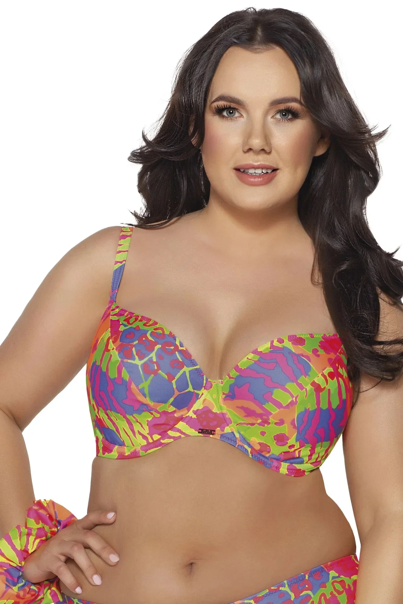 Horní díl plavek 188 Fluo AVA - pestrý vzor - měkké košíčky - podšité síťovinou - nastavitelná a neodepínatelná ramínka