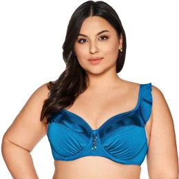 Horní díl plavek 213 azure plus AVA - azurová barva - měkké soft košíčky s kosticí - ozdobný volán - nastavitelná ramínka - klasické zapínání na zádech