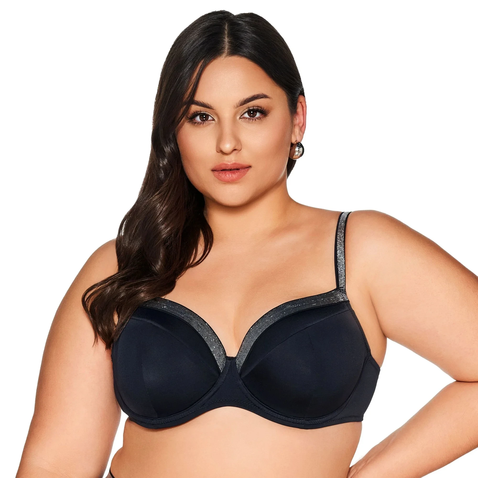 Horní díl plavek 224 black AVA - černá barva - vyztužené košíčky s kosticemi - ženský design - nastavitelná ramínka - zapínání na zádech