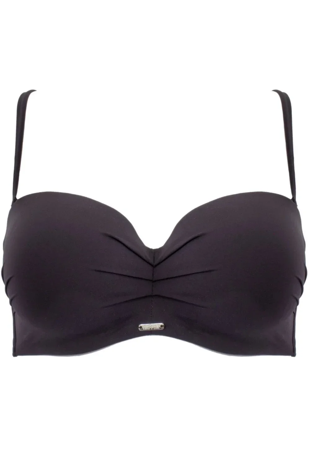 Horní díl plavek Beach balconette KRIS LINE - černá barva - košíčky vyztužené kosticemi - ozdobný detail - odnímatelná ramínka
