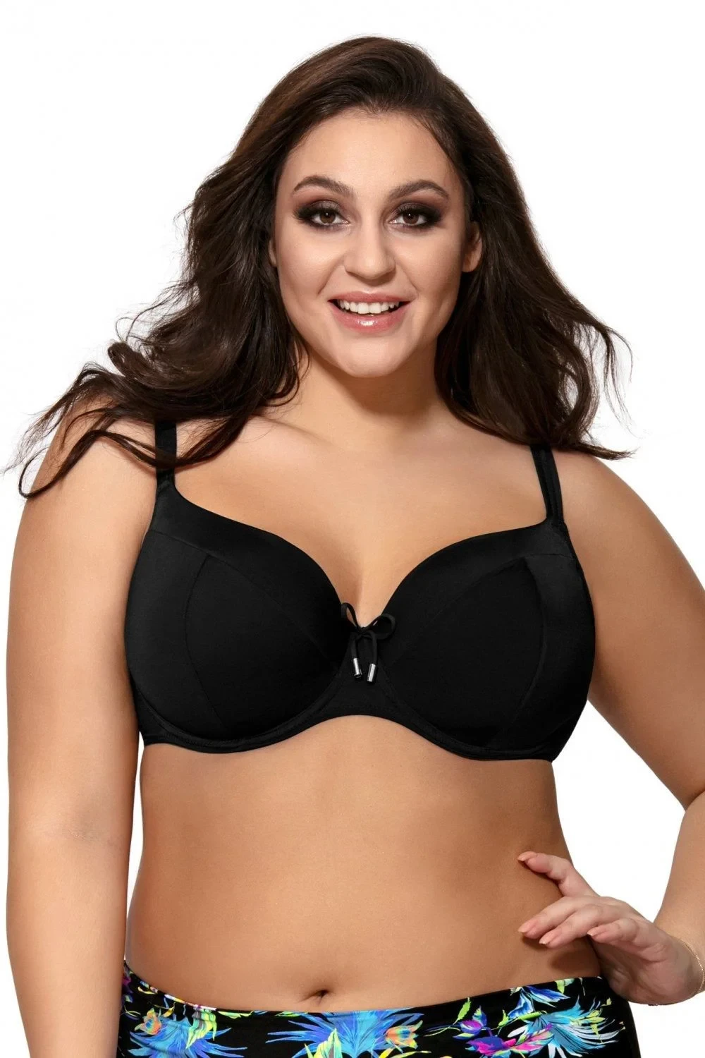 Horní díl plavek 13 black plus AVA - černá barva - z velmi kvalitního mikrovlákna - regulovatelná ramínka - bezniklové zapínání - mírně vyztužené košíčky s kosticemi - vhodné pro větší poprsí