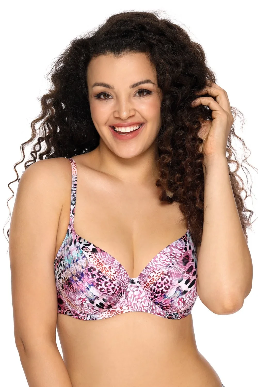 Horní díl plavek 145 pink AVA - růžová barva - mikrovlákno se zvířecími motivy - regulovatelná ramínka - bezniklové zapínání - mírně vyztužené košíčky s kosticemi