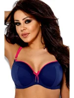 Horní díl plavek 92 AVA - tmavě modrá barva - rychleschnoucí materiál - vhodné i pro velká prsa - vyztužené košíčky - klasické kostice - zadní zapínání na kovovou plavkovou sponu