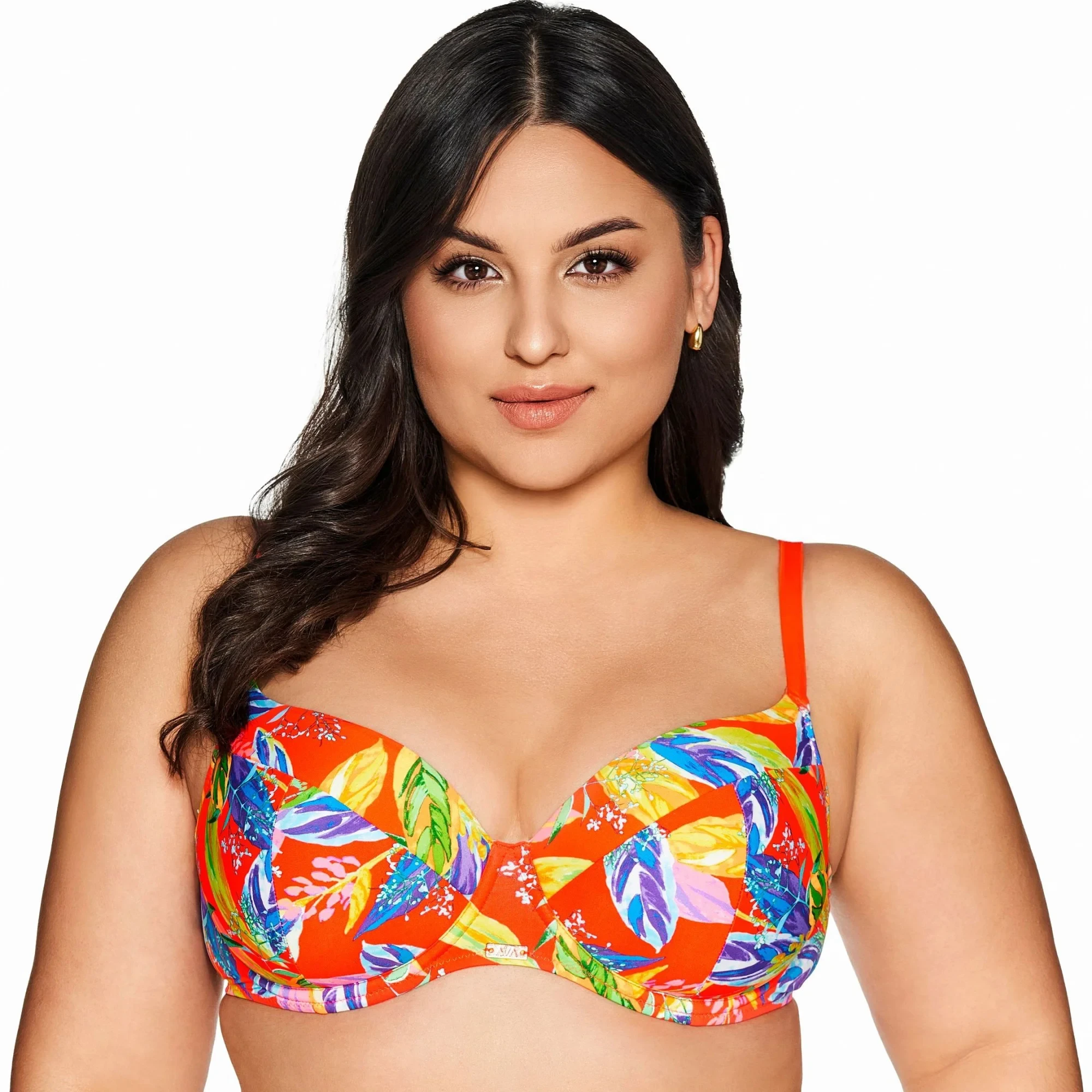Horní díl plavek Vivid 226 AVA - oranžová barva - polstrované košíčky s kosticemi - tropický vzor - nastavitelná ramínka