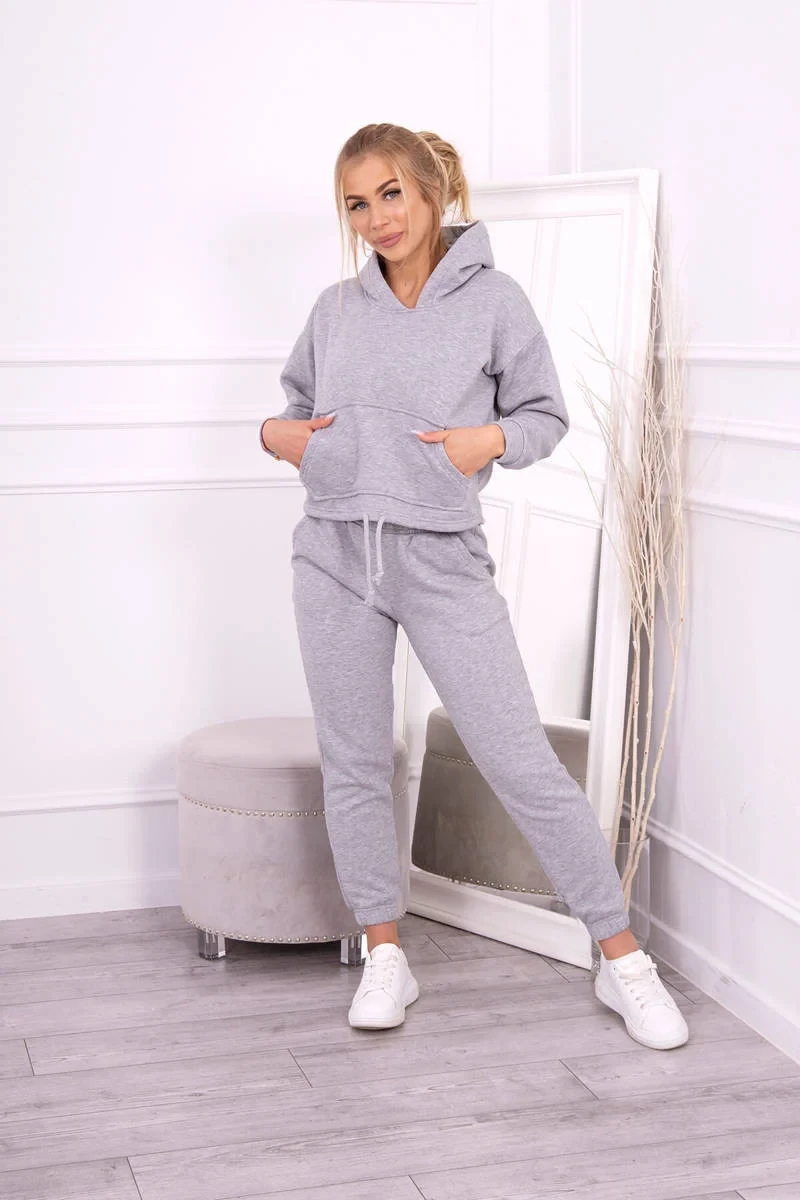 Hřejivá souprava s mikinou se zavazováním vpředu šedá