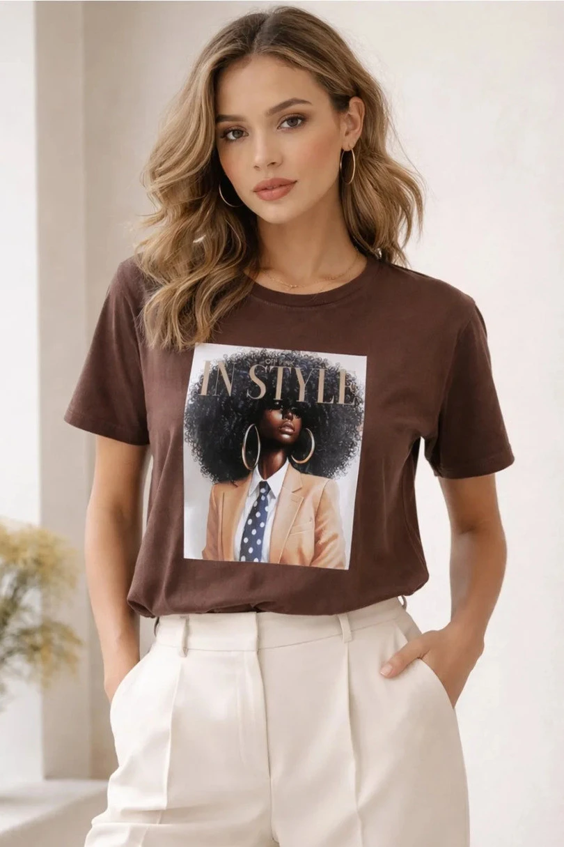 Dámské tričko Imani s velkým potiskem je dokonalou kombinací pohodlí, stylu a moderního designu. Model s jednoduchým, klasickým střihem se dokonale přizpůsobí siluetě a zajistí plnou volnost pohybu a pohodlí při nošení po celý den. Tričko je vyrobeno z vysoce kvalitního bavlněného úpletu s přídavkem elastanu, díky němuž je materiál měkký na dotek, prodyšný a mírně pružný. Velký módní potisk dodává tričku charakter a skvěle se hodí pro ležérní i sportovní stylizaci. Tričko Imani se skvěle hodí k džínům, legínám nebo šortkám a vytvoří tak stylový a pohodlný komplet pro den venku, procházku, setkání s přáteli nebo aktivní den ve městě. Je skvělou volbou pro ženy, které ocení pohodlí, módní design a vysokou kvalitu zpracování.