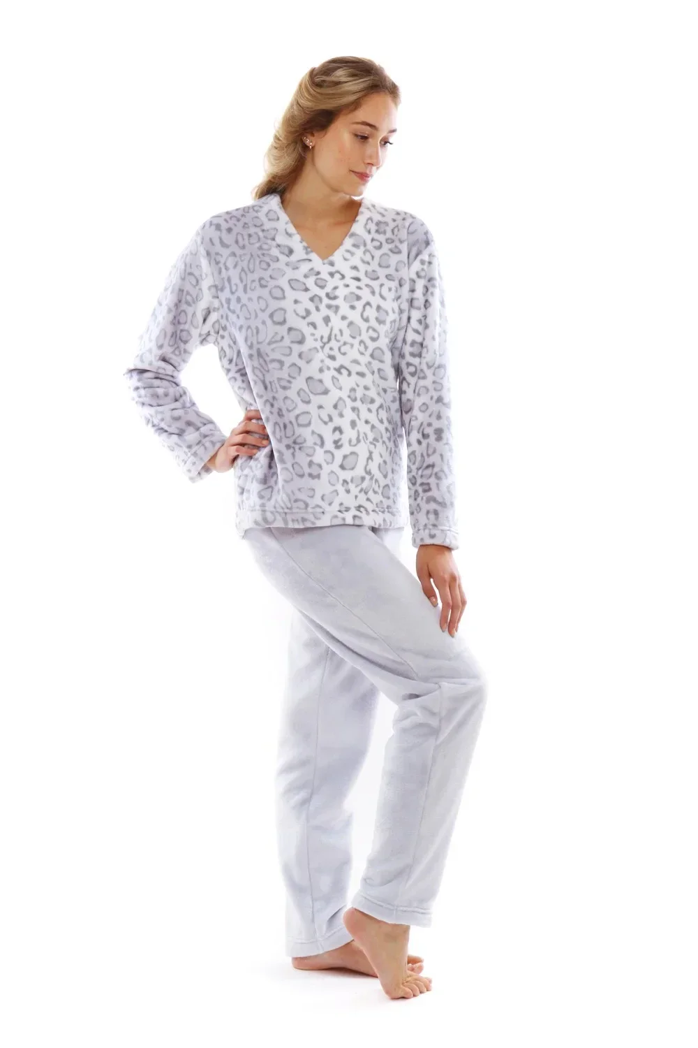 Svůdně a přitom pohodlně se budete cítit v domácím oblečení z kolekce Irbis vyrobeném z jemného materiálu flannel fleece s motivem kožešiny sněžného leoparda v kombinaci se stříbřitě šedou. Chladné dny vám zpříjemní tento domácí komplet jednoduchých pohodlných kalhot v pase s gumou, kterou lze snadno přizpůsobit a volné mikiny s výstřihem do V. Flannel fleece je sametově hebký a lesklý materiál, nemačká se, nežehlí se, snadno se pere a lze jej bez problémů sušit v sušičce na nízký teplotní stupeň. Během chladných večerů a studených rán zůstaňte v teple v náruči velké heboučké kočky.