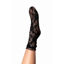 Podkreśl swój styl z subtelną nutą zmysłowości! Koronkowe skarpetki z delikatnym kwiatowym wzorem i uroczą falbanką to modny dodatek, który urozmaici każdą stylizację. Ich lekka i przewiewna struktura sprawia, że są idealne na cieplejsze dni, a elastyczny materiał zapewnia komfort noszenia. Doskonale komponują się zarówno z balerinami, jak i eleganckimi szpilkami, tworząc kobiece, a zarazem wyraziste looki. To propozycja dla kobiet, które lubią detale pełne uroku.