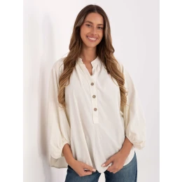 Rozměry halenky v jedné velikosti měřené na plocho: šířka v podpaží - 66 cm, celková délka - 66 cm (vpředu), celková délka - 77 cm (vzadu), šířka dole - 76 cm, délka rukávu - 51 cm (od švu).