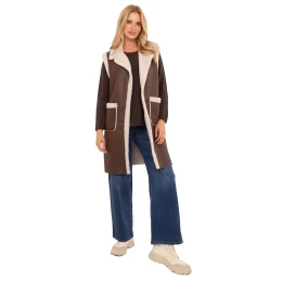 Rozměry vesty v jedné velikosti měřené na plocho: šířka v podpaží - 60 cm, šířka v bocích - 63 cm, celková délka - 95 cm.