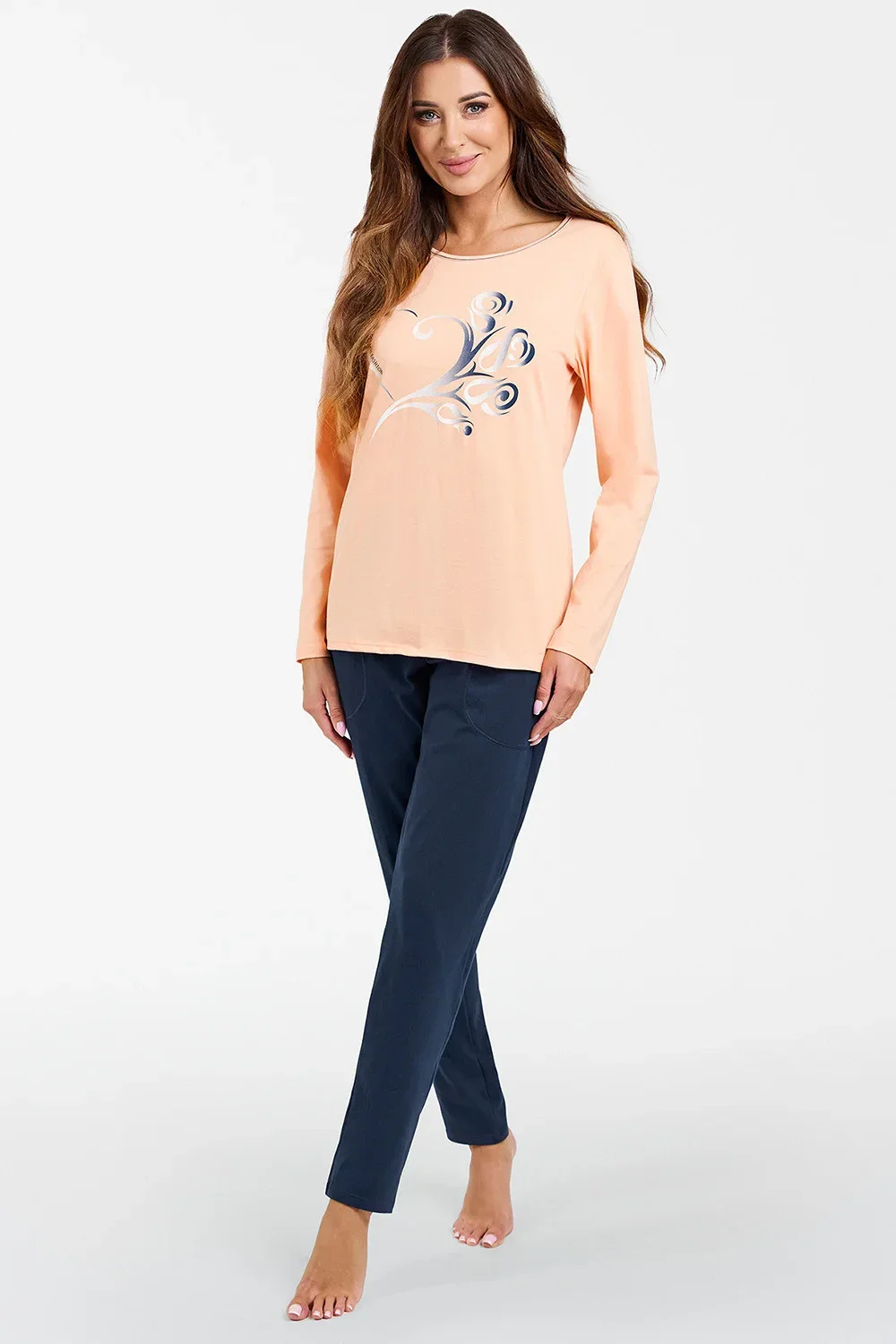 Italská móda Arietta long r. long sp. barva:lososová/modrá