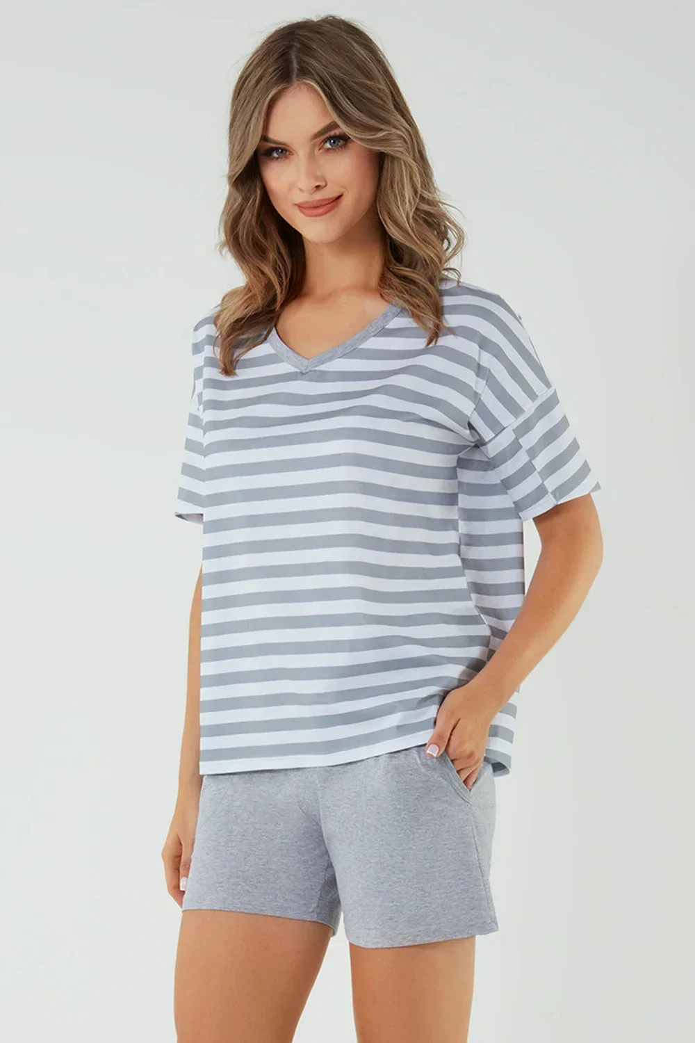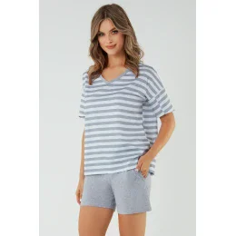Noční košile italské módy. model Bari crêpe. výrobek je vyroben ze 100% bavlny. má kapsy. délka rukávu: krátký. délka: krátká. dámský výrobek. typ výstřihu: serek.