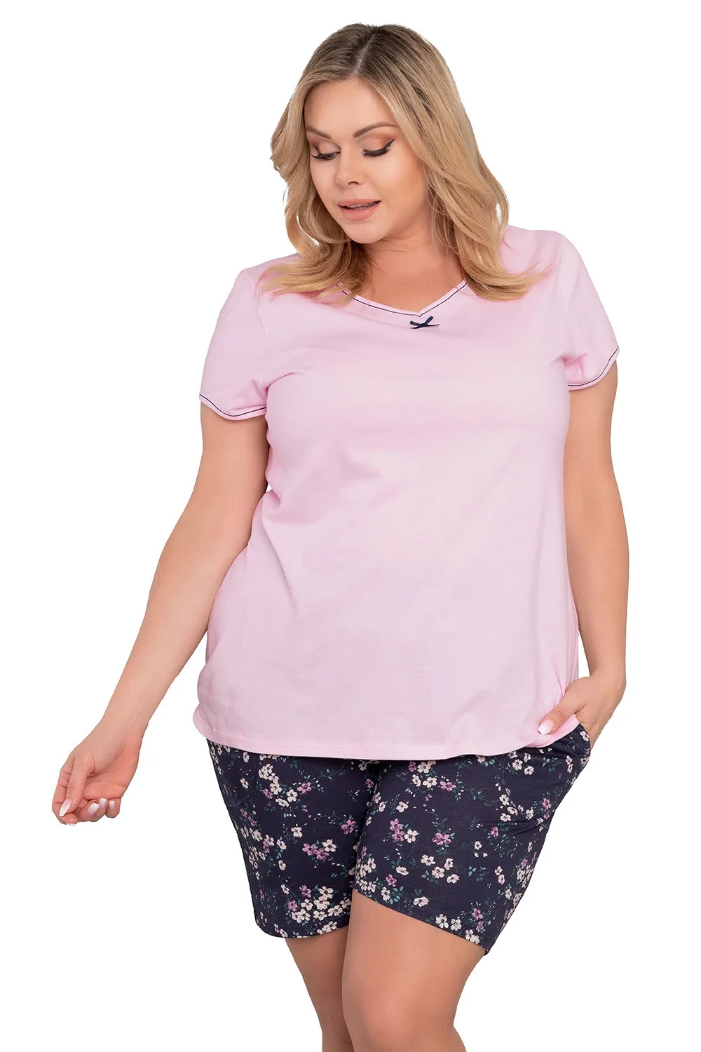 Noční košile italské módy. model Celestina c.r. c.sp. Výrobek je vyroben ze 100% bavlny. má kapsy. délka rukávu: krátký. délka: krátká. dámský výrobek. typ výstřihu: serek.