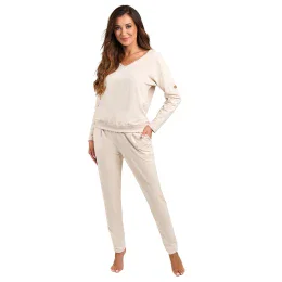 Tepláková souprava italské módy. model Karina s dlouhým rukávem. výrobek je vyroben z 95 % bavlny, 5 % elastanu. má kapsy. délka rukávu: dlouhý rukáv. délka: dlouhá. dámský výrobek. typ výstřihu: výstřih do V.
