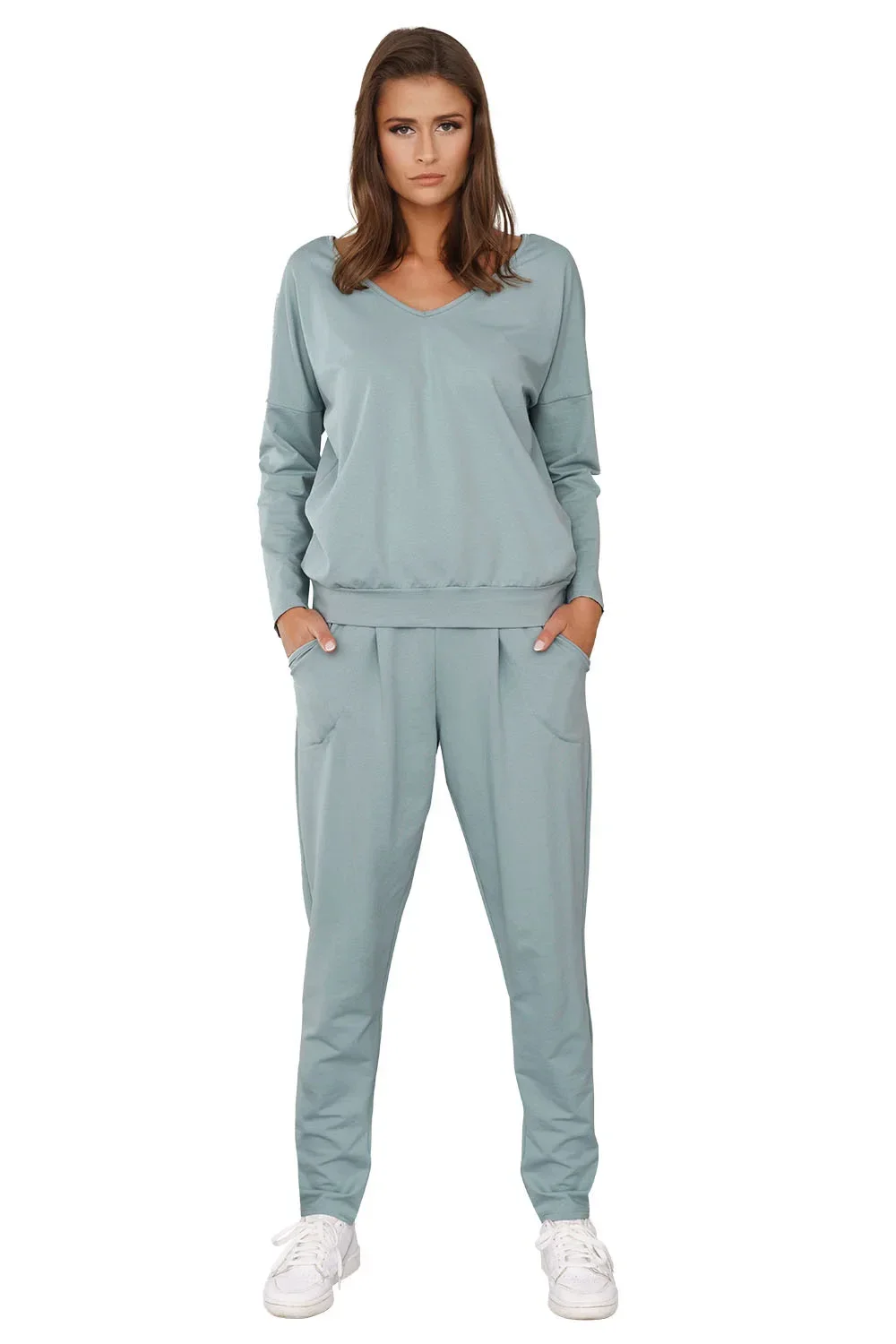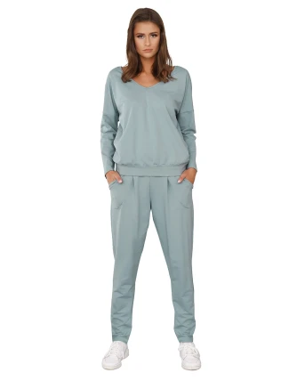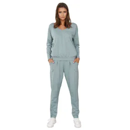 Tepláková souprava italské módy. model Karina s dlouhým rukávem. výrobek je vyroben z 95 % bavlny, 5 % elastanu. má kapsy. délka rukávu: dlouhý rukáv. délka: dlouhá. dámský výrobek. typ výstřihu: výstřih do V.