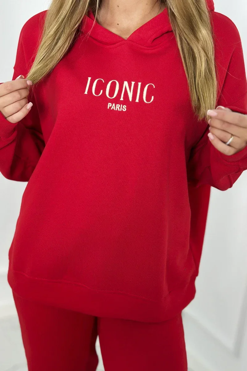 Izolovaná bavlněná souprava, mikina s vyšívacími + kalhotami červený