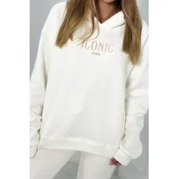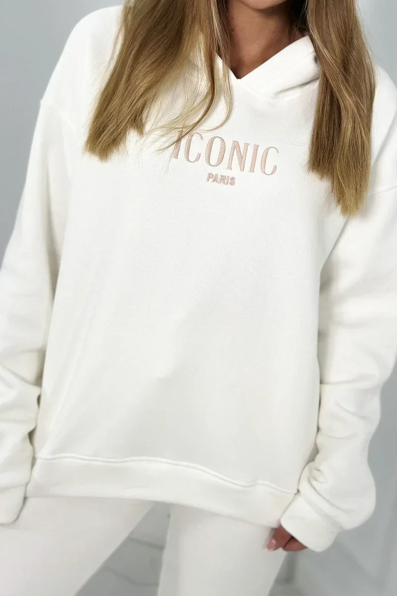 Izolovaná bavlněná souprava, mikina s vyšívacími + kalhotami ecru