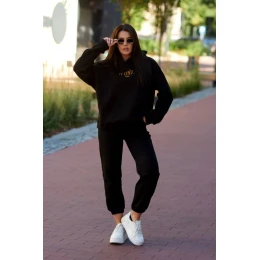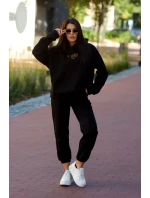 Izolovaná bavlněná souprava, mikina s vyšívacími + kalhotami černý