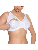 Podprsenka značky Jarpol, model MK. Výrobek má nastavitelná ramínka bez možnosti odepnutí. Podprsenka má zapínání na háčky. Místo zapínání: na zádech. 2 řady svislých háčků. 2 stupně vodorovných háčků. Výrobek je vyroben z 87 % polyamidu, 13 % elastanu. Vlastnosti výrobku: klasická těhotenská pohodlná měkká. Těhotenské oblečení. Spodní prádlo má vyjímatelné košíčky. Dámský výrobek.