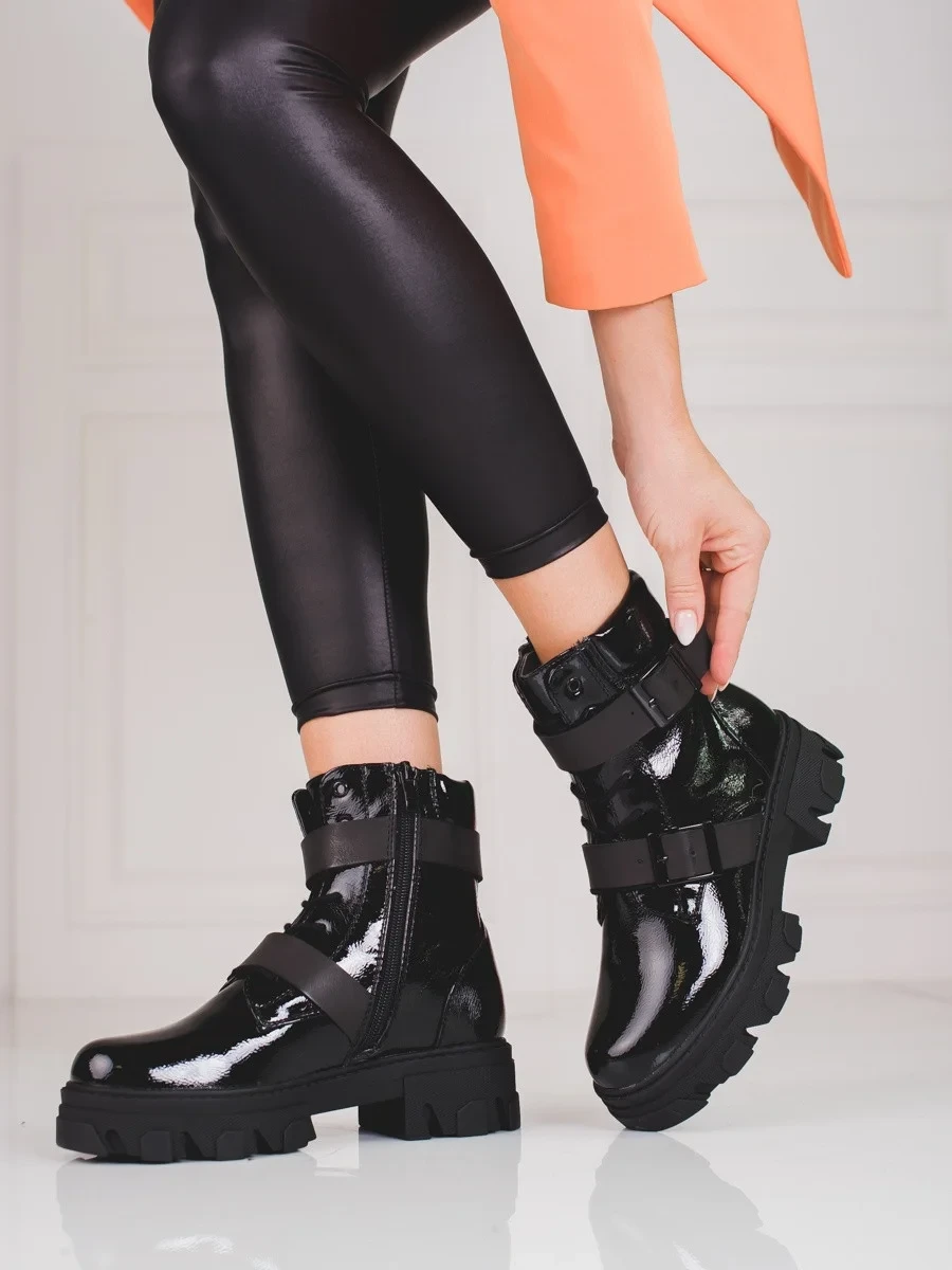 Jedinečné černé dámské kotníčkové boty na plochém podpatku