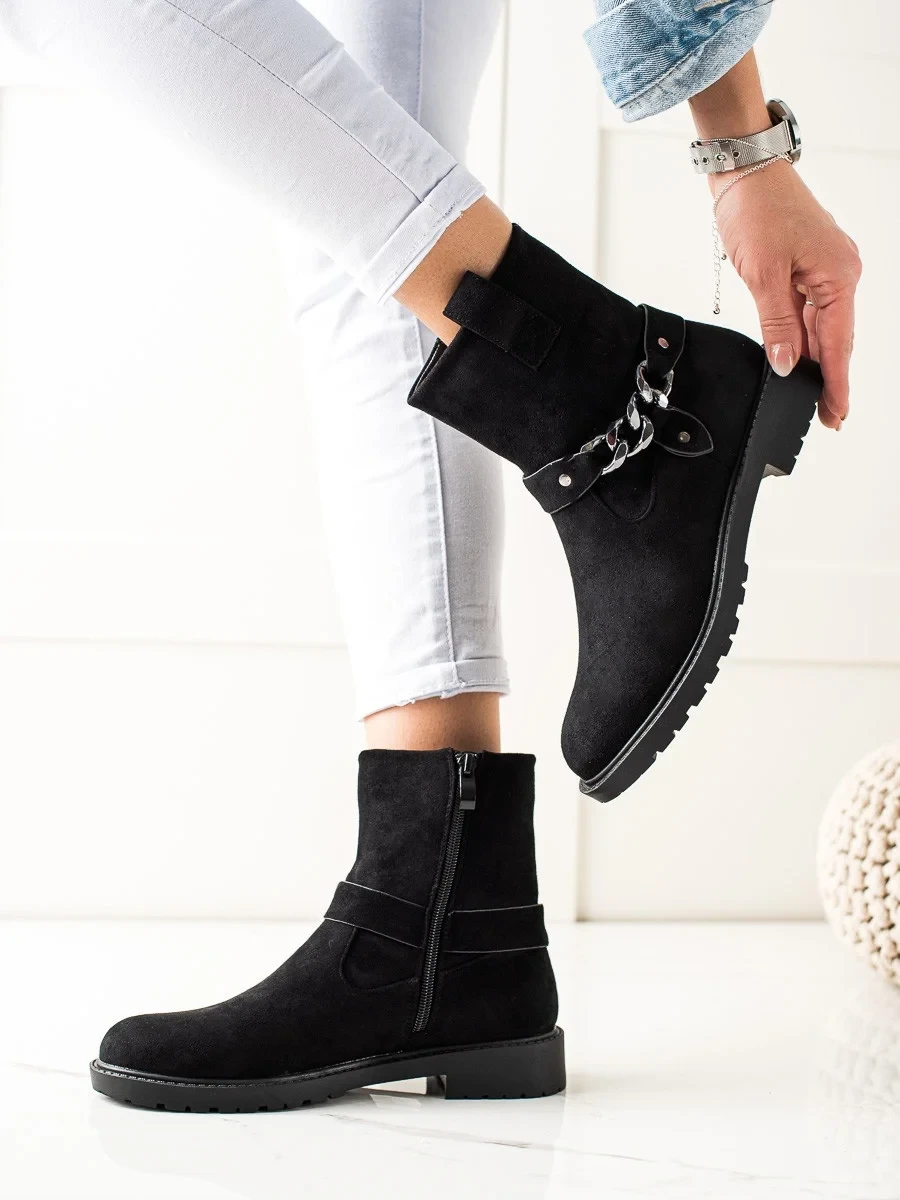 Jedinečné dámské kotníčkové boty černé na plochém podpatku