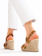 Dámské sandály na klínku s proutěním hnědé Starlenna