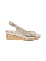 Elegantní dámské sandály od značky Vinceza jsou kombinací stylu a pohodlí, které se hodí na mnoho výjimečných příležitostí. Vyrobeny z vysoce kvalitní eko kůže. Usazeny na blokovém podpatku, zajišťují stabilitu a pohodlí po celý den. Vpředu se nachází zlatý ozdobný detail, který jim dodává eleganci. Stélka vyrobená z přírodní kůže zajišťuje komfort při nošení. Tento model se dokonale hodí do formálních stylizací, večerních výletů a na různé oslavy, představující ideální doplněk vašich stylizací. Při výběru velikosti se řiďte tabulkou velikostí.