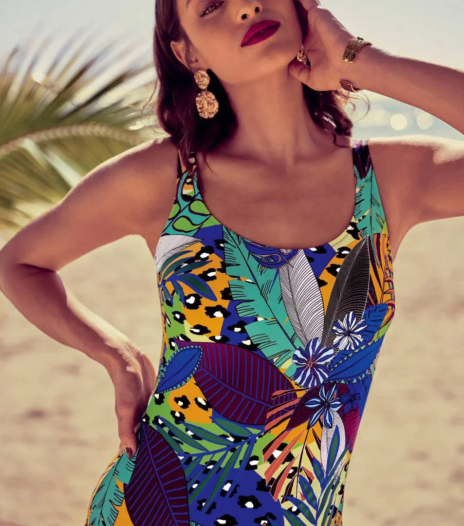 Dámské jednodílné plavky značky Anita. Přední díl celopodšitý. Všité košíčky bez výztuže, s kosticemi. Ramínka na posouvaní.