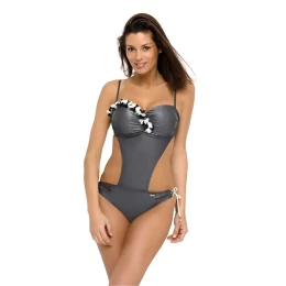 Evelyn M-530 jsou jednodílné plavky monokiny. Zdobí ji ručně šité jemné květy. Horní díl plavek je tvarovaný vyztuženými košíčky s kosticemi a push-up výplní, která zvětšuje prsa, pozvedává je a svůdně tvaruje. To z nich dělá smyslnou krásku. Push-up výplň není z modelu vyjímatelná a dodává se v každé velikosti plavek. Plavky mírně zakrývají bříško, což vám dodá pocit sebevědomí. Krásné vázačky na bocích. Model se zavazuje na zádech a má zcela odnímatelná ramínka. Italská tkanina, lehce perleťová, elegantní a krásná. Báječné barvy. Jeden z našich favoritů pro tuto sezónu. Nejnovější kolekce na léto 2019.
