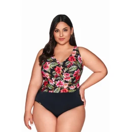 Ukwiecony SKJ 60 to doskonała alternatywa dla tradycyjnych strojów dwuczęściowych. Dwudzielna kompozycja stroju łączy wysmuklający biodra czarny dół z kwiecistą górą, która jest wsparta na szerokich ramiączkach, odciążających plecy. Wszyte w konstrukcję miseczki typu kopa solidnie podtrzymują biust, zapobiegając jego opadaniu. Dekolt w kształcie litery V pięknie podkreśla kulistość piersi, a subtelne marszczenia sprawiają, że sylwetka wydaje się lżejsza. Daj się zauroczyć w SKJ 60 i poczuj się wyjątkowo na plaży!
