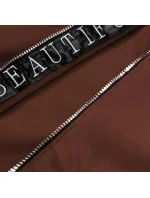 Jednoduchá hnědá dámská mikina s ozdobným zipem (AMG-37)