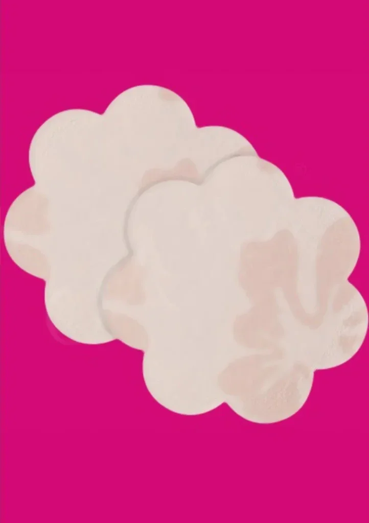 Jednorázová lepítka na bradavky značky Julimex. Balení obsahuje 4 páry kytiček tělové barvy.