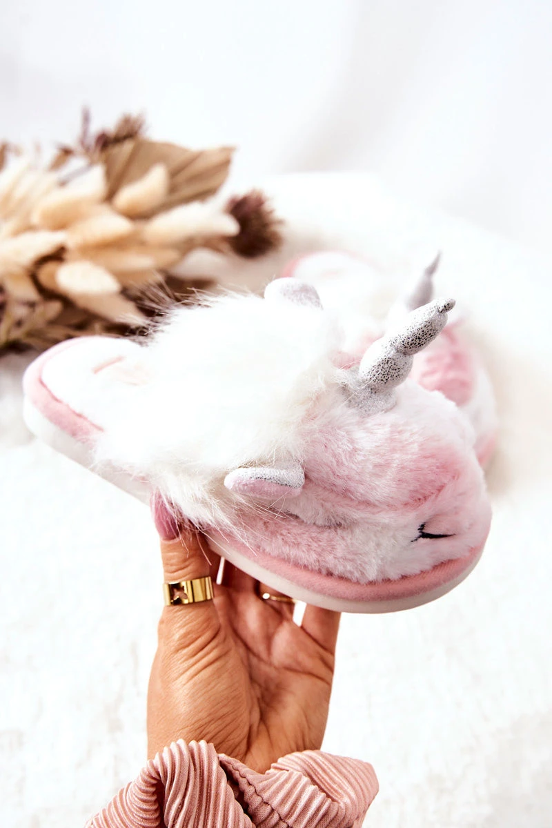 Jednorožec Warm-up pantofle Bílé a růžové Ronee