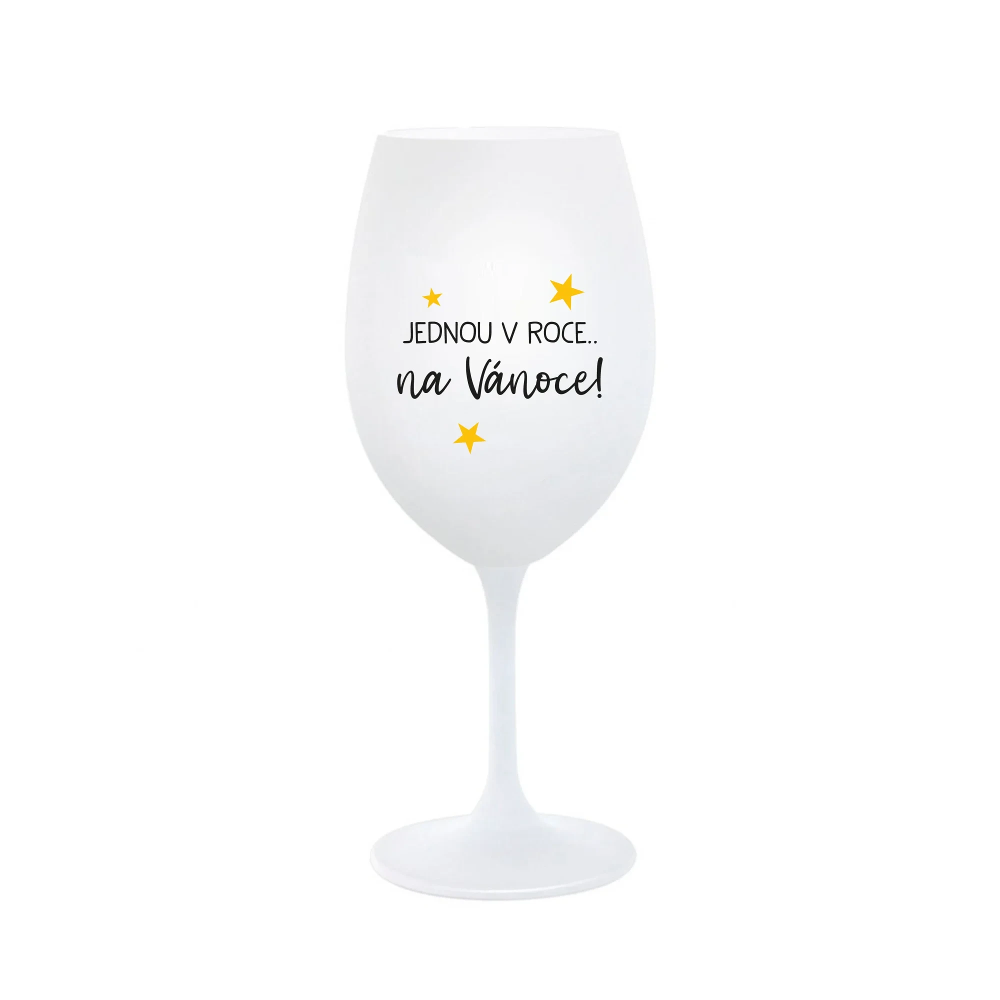 JEDNOU V ROCE NA VÁNOCE - bílá sklenice na víno 350 ml
