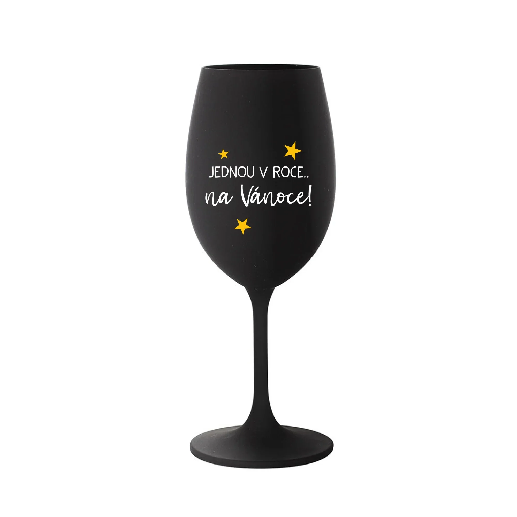 JEDNOU V ROCE NA VÁNOCE - černá sklenice na víno 350 ml