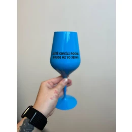 JEŠTĚ CHVÍLI POČKEJ A BUDE MI TO JEDNO. - modrá nerozbitná sklenice na víno 470 ml
