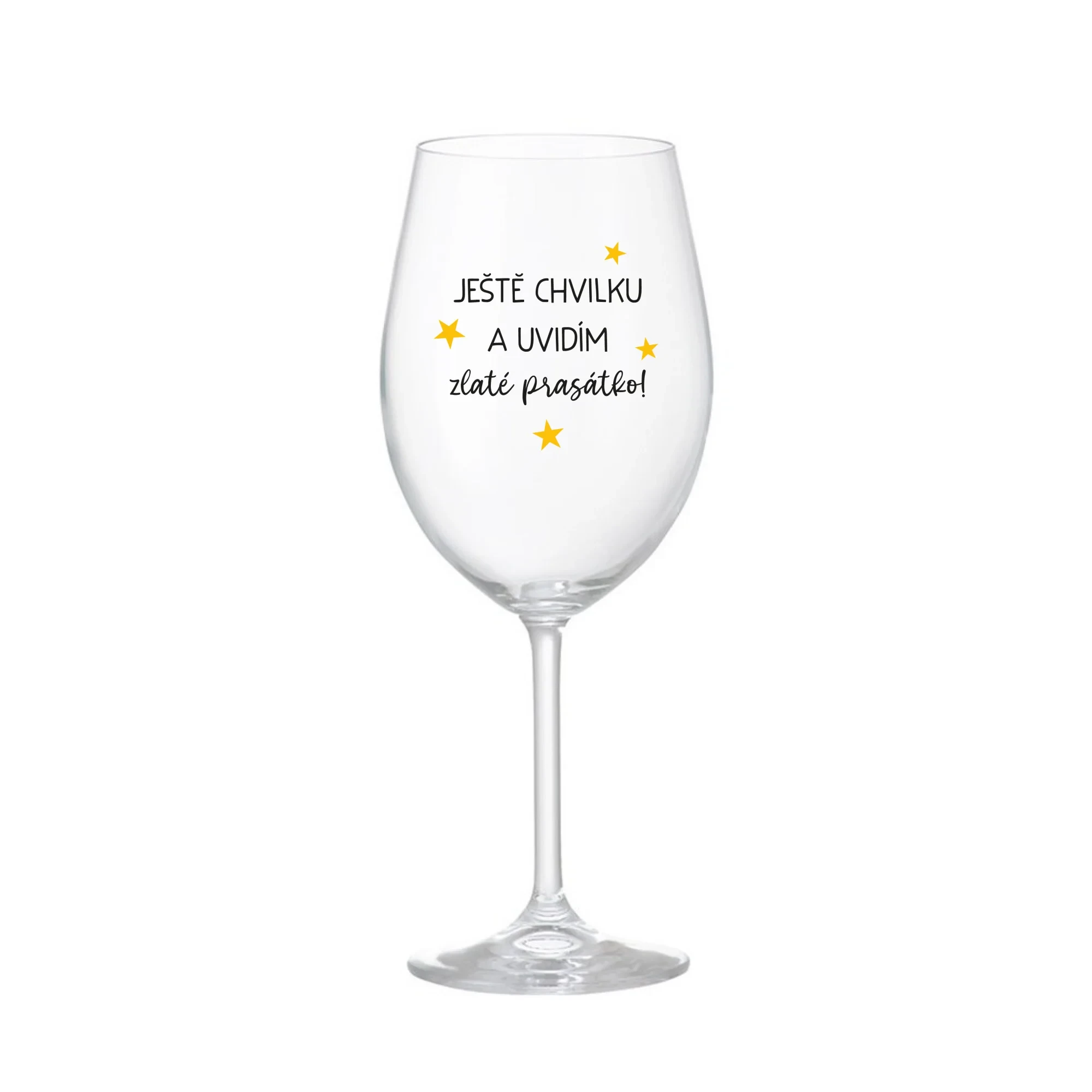 JEŠTĚ CHVILKU A UVIDÍM ZLATÉ PRASÁTKO - čirá sklenice na víno 350 ml