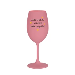 JEŠTĚ CHVILKU A UVIDÍM ZLATÉ PRASÁTKO - růžová sklenice na víno 350 ml