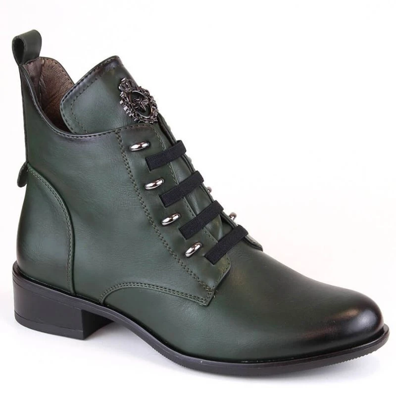 Jezzi W JEZ412B zelené zateplené boty s plochým podpatkem