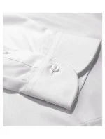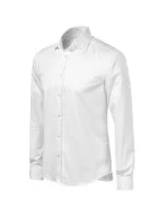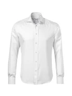 navrženo předním českým krejčím Romanem Humlíčkem příze z extra dlouhých vláken zúžený střih s bočními švy dvojité sedlo a záševky na zadním dílu dvoudílný košilový límec vyztužené špičky límce přední kraje začištěny légou dlouhé rukávy s kulatou manžetou na 2 knoflíčky perleťové knoflíčky v barvě 00 (2 náhradní navíc) tvarovaný dolní kraj