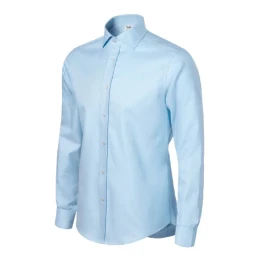 navrženo předním českým krejčím Romanem Humlíčkem příze z extra dlouhých vláken zúžený střih s bočními švy dvojité sedlo a záševky na zadním dílu dvoudílný košilový límec vyztužené špičky límce přední kraje začištěny légou dlouhé rukávy s kulatou manžetou na 2 knoflíčky perleťové knoflíčky v barvě 00 (2 náhradní navíc) tvarovaný dolní kraj